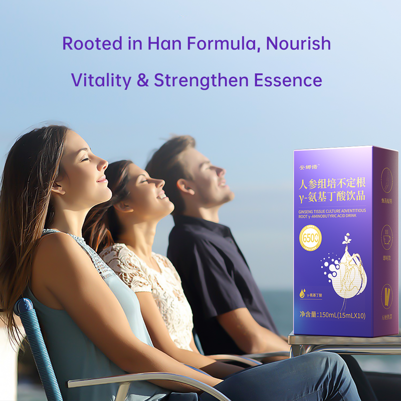 Han Formula Ginseng Tissue Culture Adventitious Root GABA Sleep Drink - 500mg GABA + 100mg Theanine, Tart Cherry & Spine Date Seed Decoction, Nourish Qi & Relieve Insomnia/Anxiety, 15mL×10