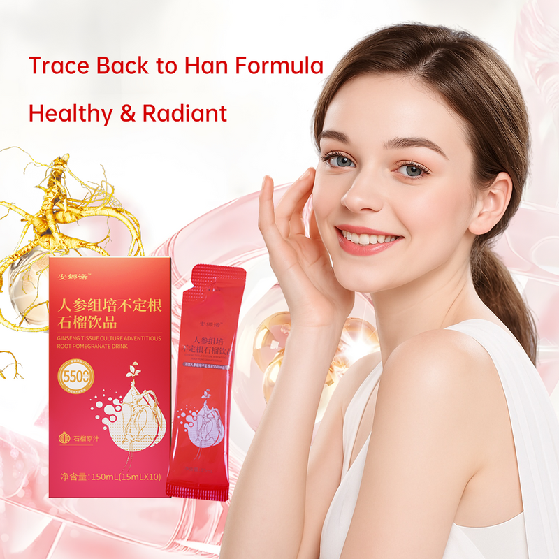 Ginseng Tissue Culture Adventitious Root Pomegranate Drink - 5500mg Highly Active Saponins, Cold-Dispelling with Old Ginger & Cinnamon, Double Antioxidant, 15mL×10